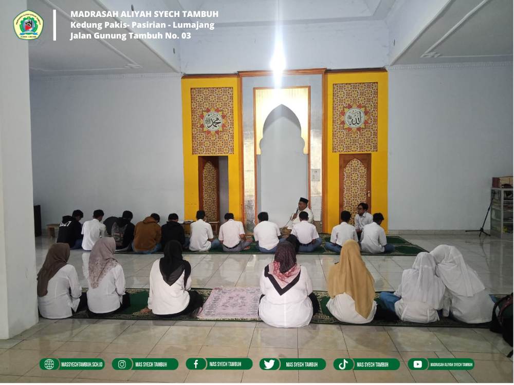 Kegiatan keagamaan tersebut dilakukan untuk membiasakan Siswa-siswi dan dewan guru MA Syech Tambuh agar terbiasa sehingga menjadi pegangan untuk menjadi kunci sukses dalam menempuh Pendidikan dengan mendapatkan ilmu yang bermanfaat.