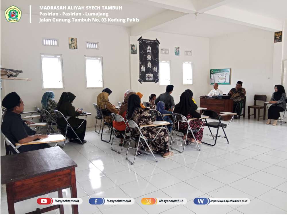 Pasirian - Madrasah Aliyah Syech Tambuh menggelar pelaksanaan pembagian raport semester genap tahun pelajaran 2024/2025. kegaiatn ini turut mengundang semua wali murid mulai dari kelasa X s.d XI yang di gelar di kelas XI-IPS A. dalam pelaksanaanya kegiatan ini langsung di pimpin oleh kepala madrasah serat turut di hadiri ole seluruh ustad/ustadzah Madrasah Aliyah Syech Tambuh. Tujuan utama pelaksanaan pembagian raport semester adalah untuk memberikan laporan hasil belajar siswa selama satu semester dan mengevaluasi serta memotivasi siswa untuk meningkatkan prestasi belajar di semester berikutnya. semoga denga pelaksanaan ini menambah semngat peserta didik dalam proses pembelajaran pada semester yang akan datang, Sabtu, 09/08/2025